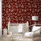 El fondo de pantalla "Navidades en la pared" evoca un ambiente festivo perfecto para las vacaciones. Con un fondo rojo oscuro y una decoración dorada.