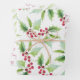 Este papel de envoltura de Navidades presenta bayas y vegetación botánicas rojas, rayas verdes y blancas y el patrón de "Feliz Navidad". Cada hoja es una opción moderna pero atractiva para tus Navidades que dan regalos. Para ver más diseños como este visite www.zazzle.com/dotellabelle Arte y diseño de acuarelas únicas de Victoria Grigaliunas de Do Tell A Belle.
