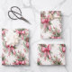 Delicados Navidades envueltos en papel presentan un hermoso patrón de arcos rosados entrelazados con vegetación vibrante y bayas, capturando el espíritu de la temporada festiva para dar regalos.
