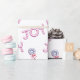 Este Navidad envuelve papel con la palabra alegría escrita en latas de dulces. Es un diseño festivo y único, con una idea moderna.