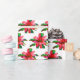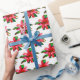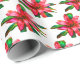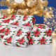 Navidades envolviendo papel con flores rojas de Bromeliad en un fondo blanco. Muy papel de bonito.