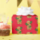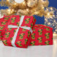 Papel de envolver de regalo de vacaciones mostrado con un lindo hombre de pan de jengibre festivo impreso en un fondo de color rojo. El papel mate muestra al Personalizar este artículo o compra como está.