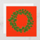Diseño de la guirnalda común - Wreath sobre fondo rojo. Ilex aquifolium, el holly, holly común, holly inglés, holly europeo, u ocasionalmente Navidades holly, es una especie de planta floreciente en la familia Aquifoliaceae. Diseño festivo decorativo.