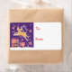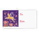 Pequeñas etiquetas de regalo para Navidades ilustradas con un ilustracion de reno bailando sobre regalos en una noche de Navidades nevados. Personalizar con sus propios nombres. Ilustracion y diseño de Sarah Trett.