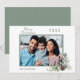 Personaliza y agrega tu propia foto familiar. Marco verde decorado con cono y pino. Añade tu apellido y año.