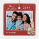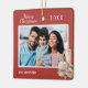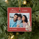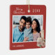 Personaliza y agrega tu propia foto familiar. Un fondo rojo clásico. Marco blanco decorado con velas y un rosa. Añade tu apellido y año.
