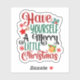 Un pegatina vibrante rebosa de alegría navideña con la frase Have Yourself A Merry Little Navidades decorados con elementos festivos como copos de nieve, campanas y sartén. Ideal para añadir un toque de alegría a cualquier celebración o decoración de los Navidades.
