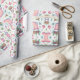 Este delicioso papel de envolvimiento muestra un caprichoso patrón lleno de alegría navideña. Decorado con un suave caldo rosa, decorado con vegetación y palos de canela, ofrece regalos muy bien envueltos, dulces y adornos que capturan la esencia de una celebración mágica de Navidades.