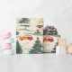 Papel de envolver decorativo con alegres árboles navideños adornados con adornos, estrellas y coloridos coches vintage, capturando el espíritu de la temporada navideña en un diseño caprichoso.