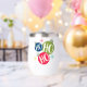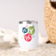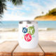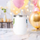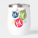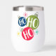 En el Ho Ho Ho Ho Ho Ho Festive Christmas Decorations Holiday Thermal Wine Tumbler aparecen tres Navidades singulares baubles con el texto "Ho Ho Ho" en tipografía moderna acentuada con copos de nieve. Perfecto para la decoración de vacaciones y la envoltura de regalo. Luminoso, colorido y divertido. Diseñado por Evco Holidays www.zazzle.com/store/evcoholidays