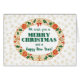 Una carta de Navidades festivos, con una corona de Navidades de Holly, Ivy, Poinsettias, Fir Cones, Rosas Navidades y un arco rojo a juego, delineado en efecto oro, con copos de nieve con efecto oro sobre un fondo blanco. También hay disponible una tarjeta frontal personalizado en esta serie.