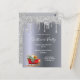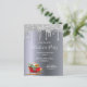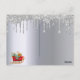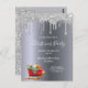 Relieve metalizado falso plateado como fondo, con goteos falsos de plata y un trineo rojo de Santa Claus lleno de regalos como decoración. Con el texto: Fiesta de Navidades escrito con escritura moderna y moderna de gran tamaño con letras a mano. Plantillas para la información de su fiesta. Sugerencia: Si no desea que se vea como una postal, haga clic en personalizar, vaya a la parte posterior y quite el separador y el sello postal.