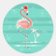 Diseño elegante con un toque retro con un flamenco rosado festivo con un sombrero de Santa Claus rojo, estrellas y palmeras decoradas con azulejos sobre un fondo acuático. Un diseño de personalizable para que puedas personalizar con tu propio texto, imágenes e ideas. Imagen original de arte digital creada por Quirky Moda.
