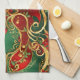 Hermosa toalla de cocina de Navidades florales verdes rojos