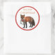 Si te gusta la naturaleza, la vida silvestre y los zorros, entonces te encantará esta pegatina de Navidad. Este pegatina presenta un zorro macho adulto con una corona de Navidades. Hay un saludo de Feliz Navidad y una frontera festiva roja. Use este pegatina para sus tarjetas de vacaciones, bolsas de regalo y más.