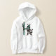 Navidades cactus niños hoodie con un dibujo de tinta digital de un encantador personaje de gatito con una flor en la cabeza casi asfixiada por un cactus con las mismas flores y bolas de Navidades de guirnaldas colgando sobre él.