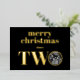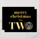 ¡Feliz Navidad dos! Tarjeta de invitación perfecta para el embarazo si espera mellizos. Diseño moderno de oro y negro, con imagen ultrasónica de tus bebés. ¡Hermoso!