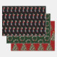 Un extraño y divertido grupo de Navidades góticos envueltos en papel. Tres diseños cuentan con coronas, medias y árboles de Navidad con antecedentes de negro, rojo y verde.