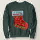 Este divertido diseño de sudaderas de suéter de Navidades Feo con connotaciones un poco deslumbrantes dice: "He sido travieso, Santa. Tendrás que quitarme el caldo". Las palabras están escritas en la imagen de un almacén de vacaciones. Es un humor perfecto y chabacano para tu Fiesta Sweater Navidades feos.