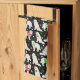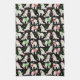 Perros de los Grandes Pirineos Cute vestidos con trajes festivos, sombreros de Santa y jersey de argyle con un patrón de adornos navideños dispersos.
