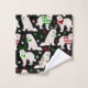 Perros de los Grandes Pirineos Cute vestidos con trajes festivos, sombreros de Santa y jersey de argyle con un patrón de adornos navideños dispersos.