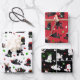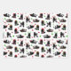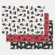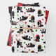 Los Navidades se burlan de los perros con trajes festivos. Sombreros de Papá Noel, corderos, ornamentos y latas de caramelo envueltas en hojas de papel.