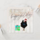 Vacaciones brillantes o tarjetas de felicitación de Navidades con un pollo con sombrero de Santa y regalos coloridos. Cambie fácilmente la información por su cuenta. Divertido y luminoso saludo de temporada.