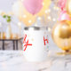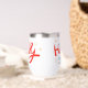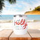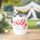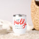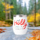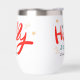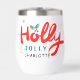 El navidad Holly Jolly Fun Winter Personalized Name Wine Tumbler presenta el texto "Holly Jolly in red and blue caligraphy script typography y personalizado con tu nombre personalizado. Acentuado con hojuelas y copos de nieve. Los regalos perfectos para Navidades y vacaciones o para fiestas Navidades. Diseñado por ©Evco Holidays www.zazzle.com/store/evcoholidays