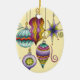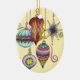 Ilustracion de época Feliz Navidad diseño con un conjunto de hermosos y coloridos adornos de cristal colgante de varias formas (redondo, lágrima, estrella, etc.) y tamaños con un arcoiris de colores, rayas y remolinos. Cambiar el color de fondo a cualquier código hexagonal!