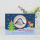 Carta de fotos de Navidad dulce y dulce. Perfecto para la primera Navidad del bebé. Presenta una escena de invierno con Rudolph y un árbol de Navidad. Añada su propia imagen y texto.