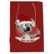 Bolsa de Regalo de personalizable con ilustracion de la cabeza de un lindo koala con el gorra de Santa; gran decoración para vacaciones de Navidades, diseño de plantilla editable con campo personalizado para tu propio texto, ilustrado por Radka Kavalcova