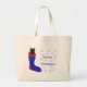 Tote festivo para el amante de los gatos, con una pintura de un gatito negro en un Navidad rojo y azul caldeado de medias, por copos de nieve que caen suavemente. Los Navidades secundarios se pueden personalizar con su propio texto en el formulario de plantilla.