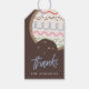 Muestre su apreciación con esta etiqueta de regalo de la fiesta festiva decorativa de galletitas, creada para coordinar con la colección de fiestas "Decorar + Celebrar". Una galleta redonda de azúcar está adornada con espolvorines y espolvorines. El ilustracion se coloca sobre un fondo marrón con una textura moteada, y se acompaña con la palabra "gracias" en letras manuscritas.