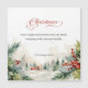 Este bonito diseño presenta un gráfico de texto de caligrafía "Navidades" personalizado y un verso de Navidades sentidos sobre un fondo de color agua, incluyendo un apacible paisaje cubierto de nieve con cabañas, pino y holly.