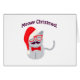 ¡Navidades Meowy! Un gato lindo con bigote vestido con un sombrero de Santa y gafas.