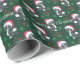 Este adorablemente lindo "¡Navidades Meowy!" envuelto de papel tiene un gatito personalizado blanco y negro con grandes ojos verdes sobre él en un fondo verde con puntitas y bayas.