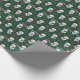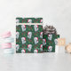 Este adorablemente adorable "¡Navidades Meowy!" envuelto de papel tiene un gatito personalizado rayado en una mesa gris con grandes ojos verdes sobre él en un fondo verde con puntitas y bayas.