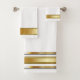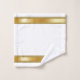 Decore su cuarto de baño para las vacaciones de los Navidades con esta toalla de baño de diseño personalizado. Los acentos dorados metálicos sobre el blanco hacen una declaración elegante para cualquier decoración festiva.