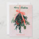 A. pintura de cierre de la vida de un estropajo colgante de ramas holly y pino, arco rojo, colores Navidades pastel brillantes. Un diseño de navidades sencillo, minimalista y contemporáneo que destaca en esta temporada de vacaciones. El elegante guión verde "Feliz Navidad" también está al frente junto con el nombre de la familia. La parte posterior de la tarjeta permite un mensaje personal de vacaciones junto con todos los nombres de los miembros de la familia, si así lo desea. Disfrute de las vacaciones de invierno con esta elegante elección para enviar a familia y amigos para Navidades y Año Nuevo.