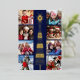 Un verdadero árbol de Navidad de Relieve metalizado dorado con las palabras HO HO HO son la imagen central en un fondo marino que apoya su selección de 8 divertidas fotos familiares en la portada. Los huéspedes descubrirán un corazón diminuto en la estrella, lo que significa sus sentidos deseos para unas vacaciones alegres. Personaliza otro retrato familiar por la espalda con un sentimiento y un nombre familiar personalizado.