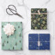 tres gráficos de invierno minimalistas dibujados a mano diferentes en tres hojas de papel de envoltura separadas