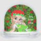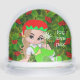 Modern Cute Navidades elf hada sosteniendo una flor margarita y el texto Globe de la Nieve. El texto se puede personalizar. Ideal para navidades, cumpleaños, fiesta, favor de la ducha para bebés y más.