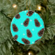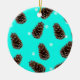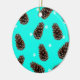 Conos de pino marrón natural con pequeños copos de nieve sobre un fondo de color bonito-agua. Agrega un poco de color en negrita a tu árbol de Navidad.