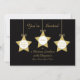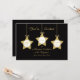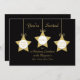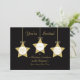 Esta elegante invitación a almorzar Navidades cuenta con tres estrellas doradas con arcos que contienen detalles de la invitación al almuerzo para el día, la fecha, la hora y el rsvp. Estas tres estrellas doradas aparecen sobre un elegante fondo negro donde se incluyen detalles fiestas adicionales. Una forma muy agradable de invitar a sus huéspedes a un almuerzo Navidad en esta temporada de vacaciones. Copyright henishouseofpaper