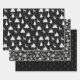 **Navidades negros envolviendo papel plano de hoja de 3** surtido de tres sencillos patrones minimalistas de vacaciones festivas en blanco y negro sobre hojas planas de Navidades envolver regalo.