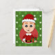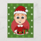 Diseño con ilustracion de un lindo sonriente chico feliz con el pelo jengibre, el niño está usando un disfraz de Santa Cláusula con gorra rojo y sosteniendo un regalo; en círculo rojo sobre fondo verde con un patrón impecable con estrellas verdes y blancas, Para ver más de mis personajes de caricatura, por favor visite mi tienda