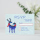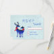 Navidades RSVP con un fondo verde claro y blanco nevado. Ilustrado con un par de ciervos escandinavos azules con pañuelos rojos. Con diseños decorativos en sus cuerpos.