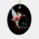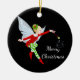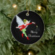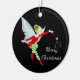 Ornamento de Navidad mostrado en forma redonda con un fondo negro con una linda imagen mágica de hada de vacaciones. Personalizar este artículo o compra tal cual.