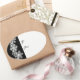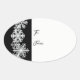 Se muestra este pegatina de etiquetas de regalo de forma ovalada en una impresión de copos de nieve blancos y negros. Texto de A: y De: en pegatina para el destinatario de regalo. Personalizar o compra como está. Realizado para coordinar con todo tipo de papel Navidad, envoltura de regalo.