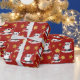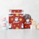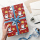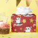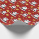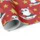 Navidades envolviendo papel con ilustracion de cabeza de panda lindo con el gorra de Santa, en círculo rojo, con patrón amarillo con estrellas, Navidades diseño de vacaciones para niños, con personalizable plantilla de texto para tu nombre o mensaje; ilustrado por Radka Kavalcova